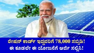 PM Surya Ghar Yojane: ರೇಷನ್ ಕಾರ್ಡ್ ಇದ್ದವರಿಗೆ ಈಗ 78,000 ಸಬ್ಸಿಡಿ! ಈ ಯೋಜನೆಗೆ ಈಗಲೇ ಅರ್ಜಿ ಸಲ್ಲಿಸಿ.